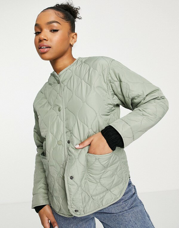 ニュールック New Look カーキのニュールックカラーレスキルティングジャケット アウター レディース 女性 インポートブランド 小さいサイズから大きいサイズまで