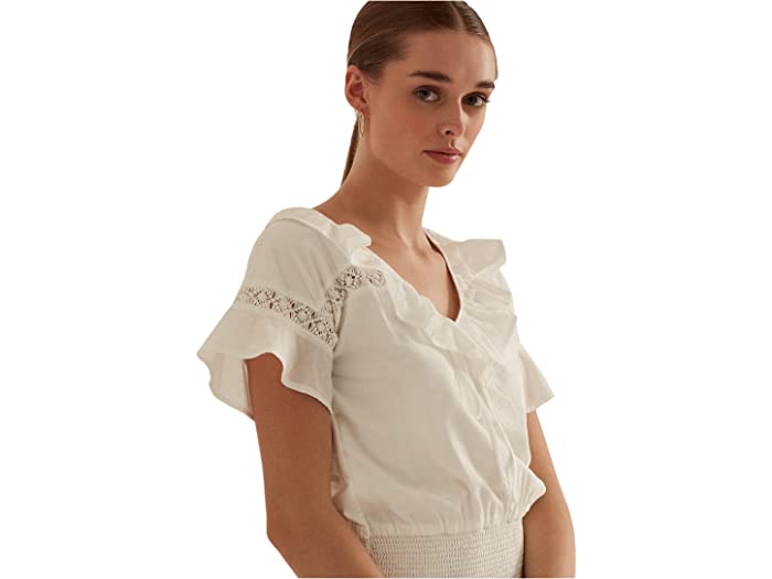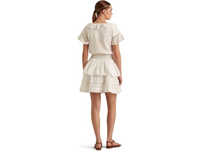 (取寄) ローレン ラルフローレン レディース ラッフル トリム コットン ボイル ドレス LAUREN Ralph Lauren women Ruffle Trim Cotton Voile Dress White