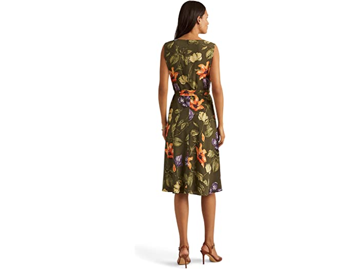 (取寄) ローレン ラルフローレン レディース フローラル ベルテッド クレープ ドレス LAUREN Ralph Lauren women Floral Belted Crepe Dress Olive Multi