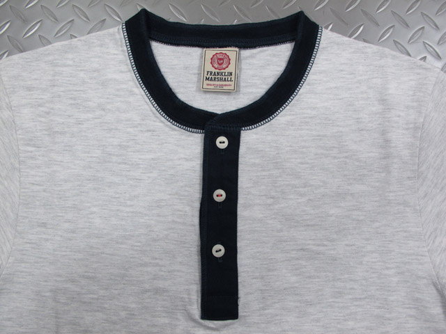 FRANKLIN&MARSHALL/フランクリンアンドマーシャルJERSEY ROUND NECK T-SHIRT半袖ヘンリーネックTシャツ/トリムヘンリー LIGHT GREY MELANGE(ライトグレーメランジ)/SKU #TSMF202AMS17