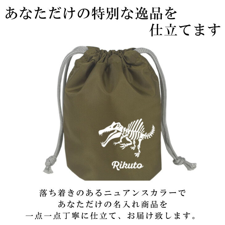 名入れ コップ袋 (巾着袋 / ナイロン / 恐竜 / スピノサウルス )| ノーアイロン 子供用 巾着袋 コップ入れ 巾着 保育園 コップ 袋 女の子 男の子 小さめ 歯ブラシセット メイクポーチ かわいい 入学 入園 小学校 撥水 入学準備 幼稚園 入園準備