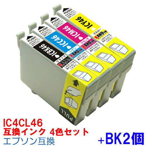 【時間限定クーポン配布】インク インク エプソン IC46 4色セット +BK2本付 プリンターインク インクカートリッジ epson インキ INKI 互換インク IC4CL46 BK 単品 黒 ICBK46 ICC46 ICM46 ICY46 epson 46 互換インク10倍
