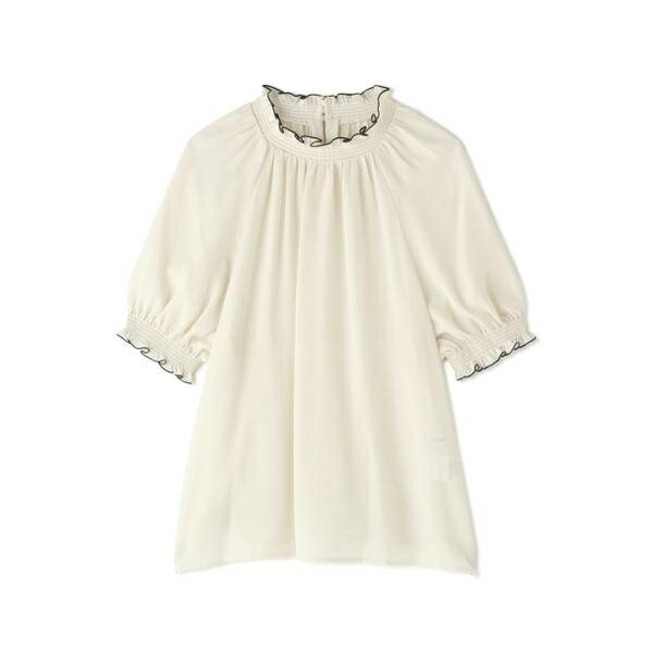[型番:0172110540][design & styling]細かなシャーリングデザインが女性らしい雰囲気のブラウスは、ネックラインと袖口のバイカラーメロウディテールがポイント♪