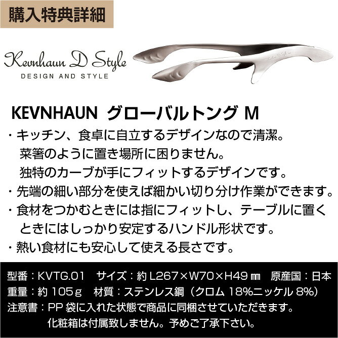 型番:KVTG.01 サイズ:約L267×W70×H49mm 原産国:日本 重量:約105g 材質:ステンレス鋼(クロム18%ニッケル8%) 注意書:PP袋に入れた状態で商品に同梱させていただきます。