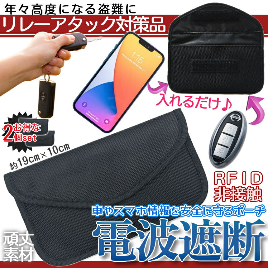 【期間限定!全商品ポイント5倍】 電波 遮断 ポーチ 2個 ブラック リレーアタック 対策 盗難 防犯 防止 車 家 鍵 電子キー スマホ スマホポーチ スマホケース スキミング リレーアタック対策ポーチ 2-SYADAPOCHI TOKU 送料無料