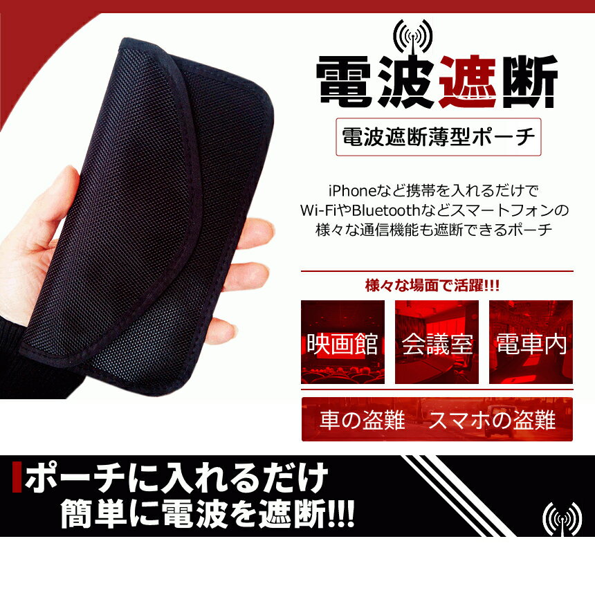 【商品説明】 iPhoneなど携帯を入れるだけで Wi-FiやBLUETOUTHなどスマートフォンの 様々な通信機能も遮断できるポーチ ・iPhoneや各種スマホに対応!!! ・電源はONのままでOK!!! ・外ポケットは電波の遮断はできませんが 切符や入場券入れなどに使えます!!! 強固な盗難防止システムを持つ最新型車でもドアロックは瞬間に空き! 新たな車の盗難方法「リレーアタック」から愛車を守りましょう♪