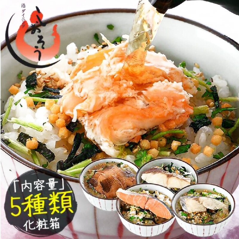 小麦、かに、大豆、ごま、鮭【ふるさと納税】極みの地魚茶漬け5種セット [053-a011]